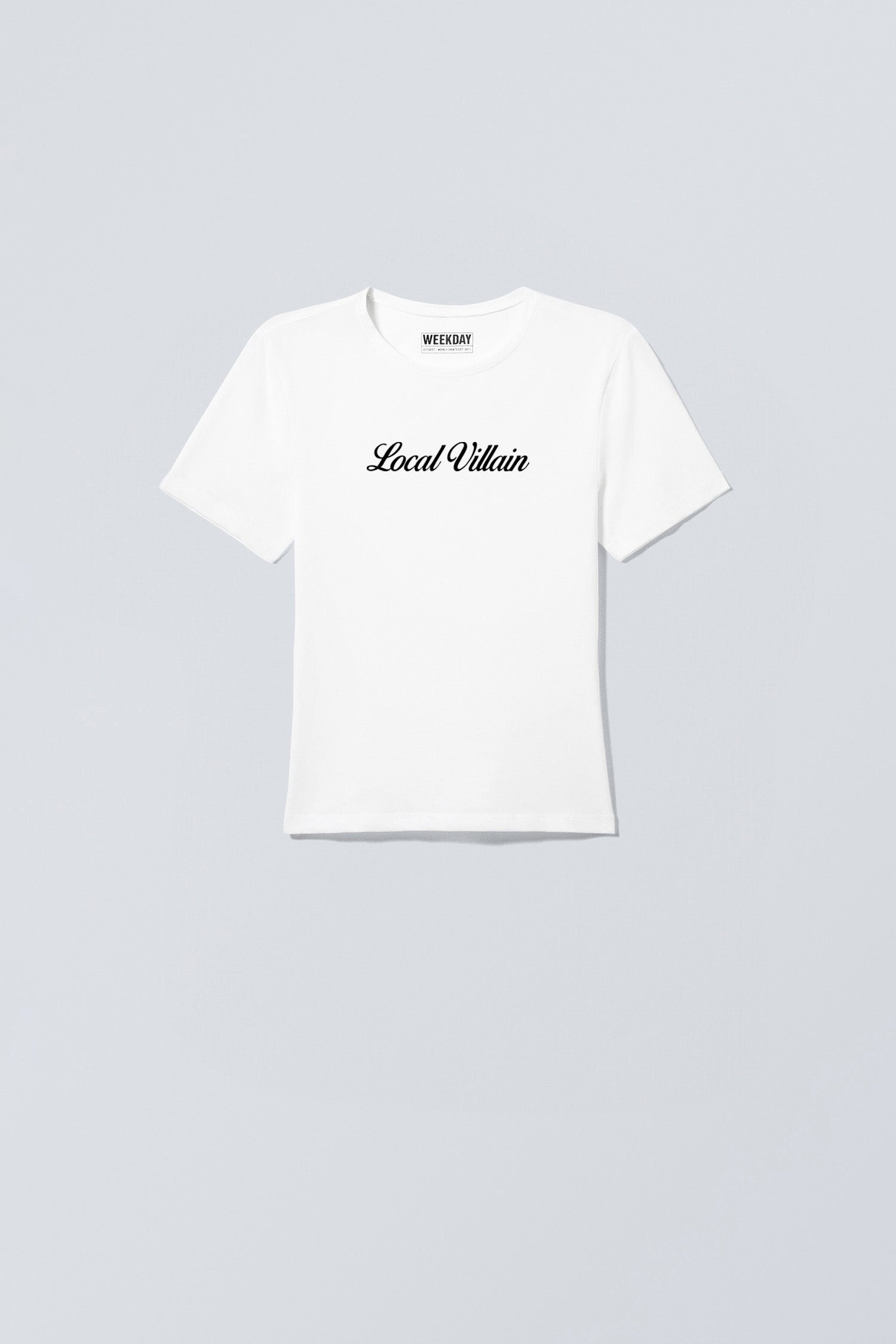 The Zeitgeist Baby T-Shirt is unisex and made from soft and stretchy cotton jersey. It has a ribbed banded crewneck, short sleeves, and a cropped slim fit.