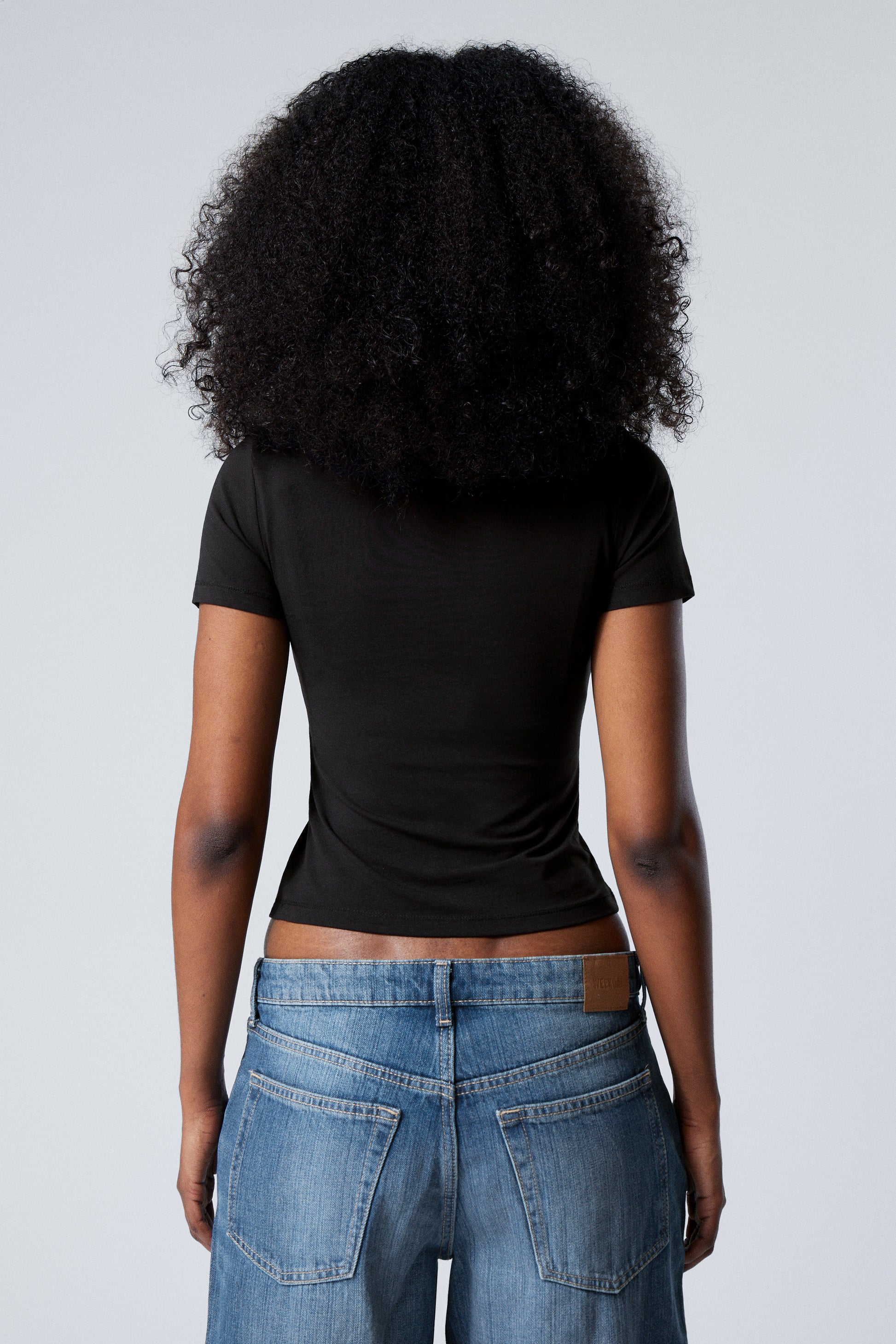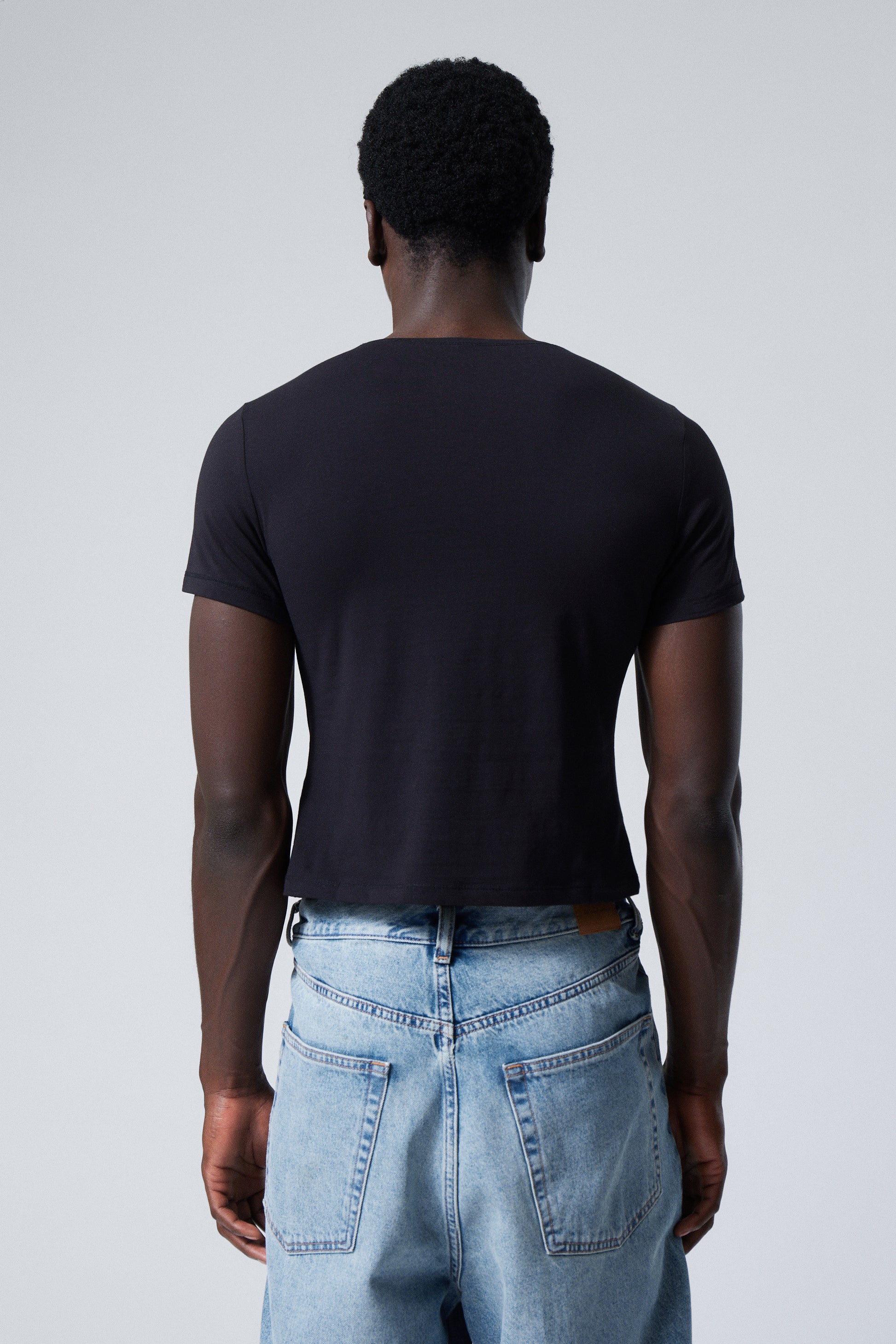 The Zeitgeist Baby T-Shirt is unisex and made from soft and stretchy cotton jersey. It has a ribbed banded crewneck, short sleeves, and a cropped slim fit.
