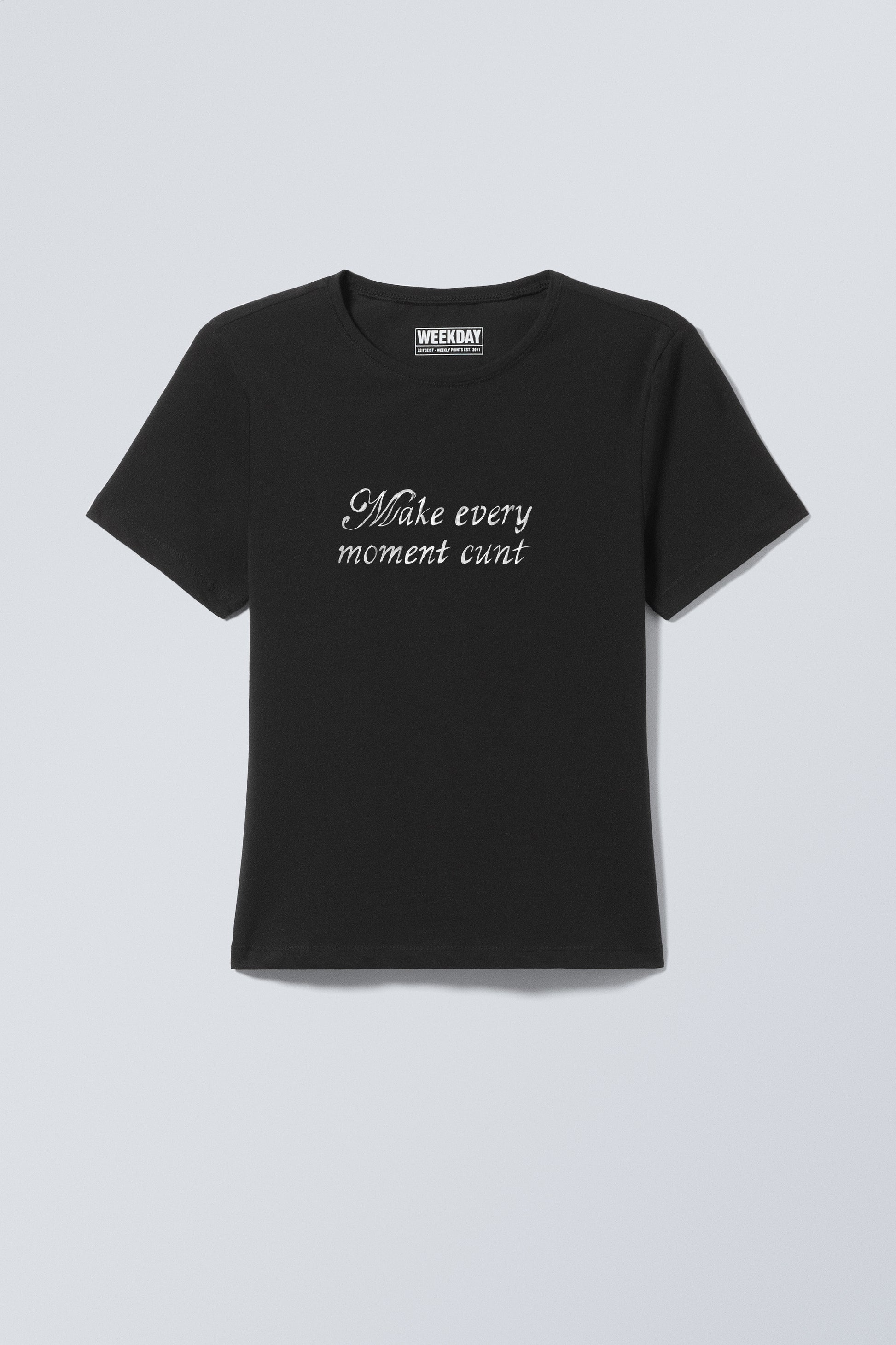 The Zeitgeist Baby T-Shirt is unisex and made from soft and stretchy cotton jersey. It has a ribbed banded crewneck, short sleeves, and a cropped slim fit.