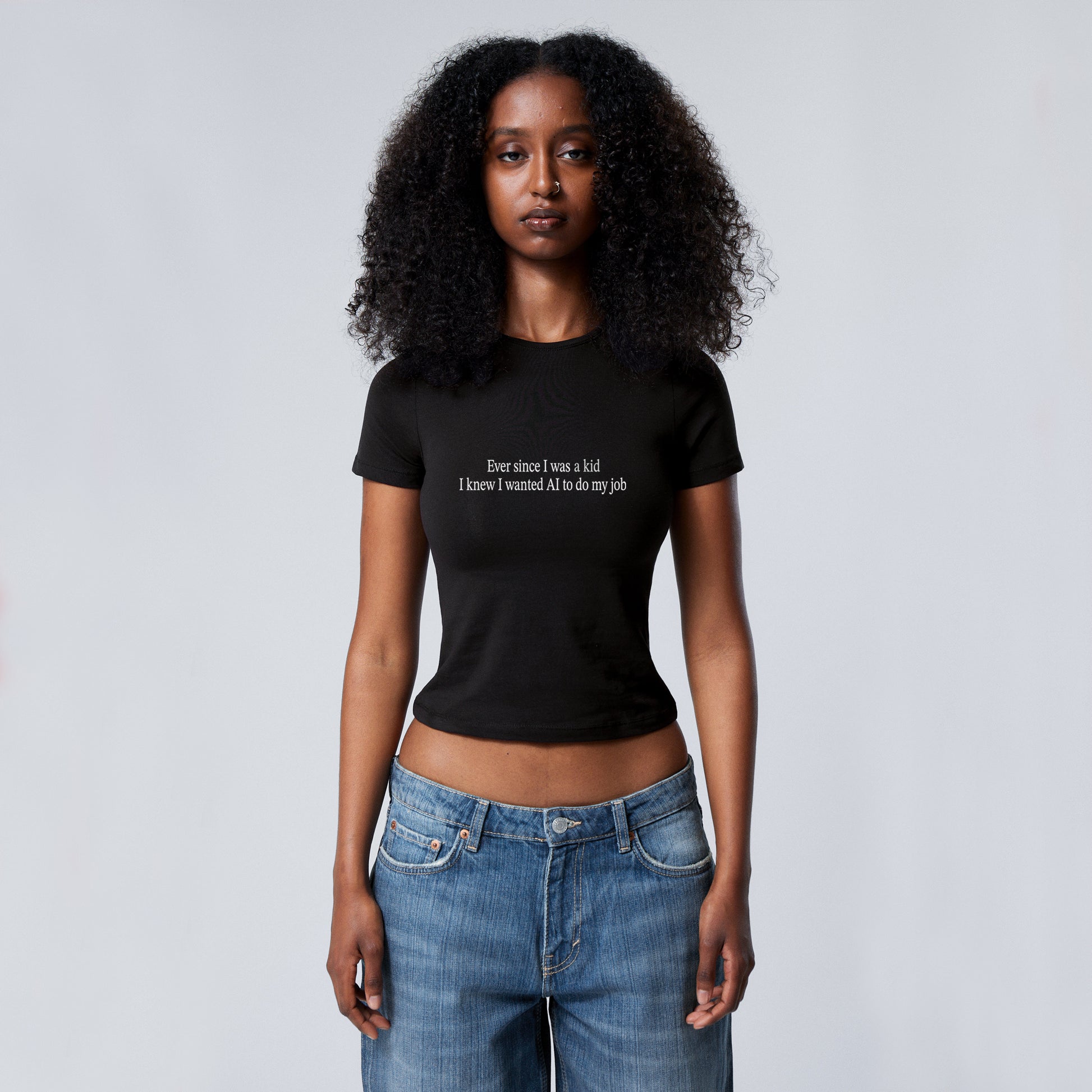 The Zeitgeist Baby T-Shirt is unisex and made from soft and stretchy cotton jersey. It has a ribbed banded crewneck, short sleeves, and a cropped slim fit.
